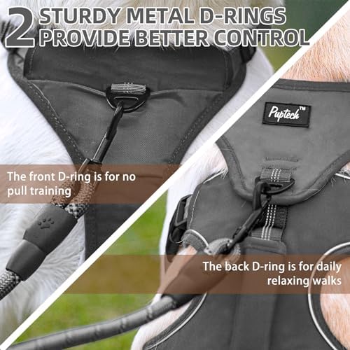 PUPTECK Upgraded Escape Proof Dog Harness and Leash Set No Pull Adjustable Reflective Dog Vest with Padded Lift Handle for Medium Large Dogs Walking Training, Grey/Black, XL