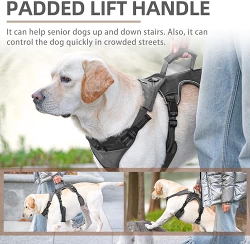 [PADDED LIFT HANDLE] – The harness has a top handle that can be used for auxiliary control. For example, helping a senior dog up and down stairs or vehicles, helping a dog up and down a hill while hiking or hunting, and quickly controlling a dog during training or crowded streets.