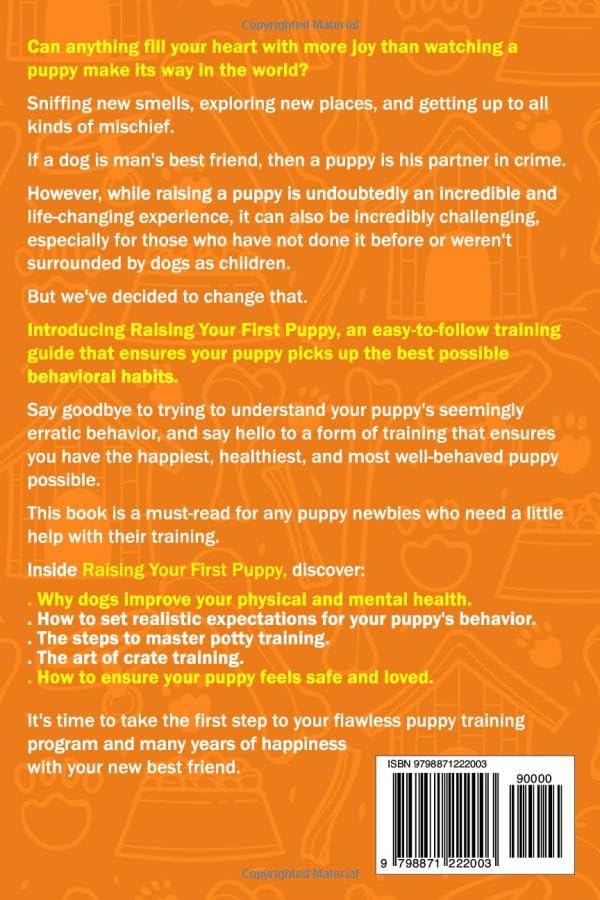 Say goodbye to confusion and hello to a well-behaved, happy puppy.Explore the intricacies of crate trainingGet proven advice on how to ensure your pup feels safe and loved. Your roadmap to a flawless puppy training program. Take the first step toward a future filled with wagging tails and boundless love—grab your copy of “Raising Your First Puppy” today!