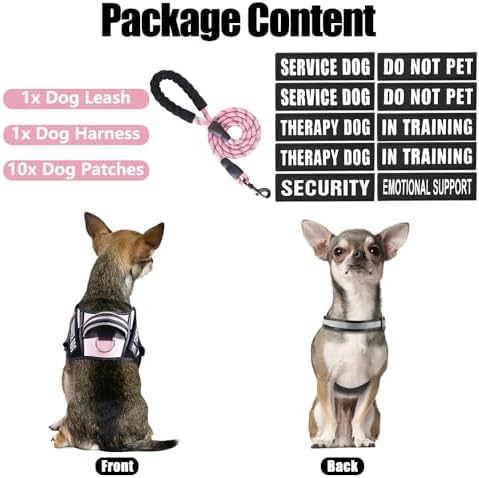 Service Dog Vest Harness and Leash Set, Animire in Training Dog Harness with 10 Dog Patches, Reflective Dog Leash with Soft Padded Handle for Small, Medium, Large, and Extra-Large Dogs (Pink,XS)
