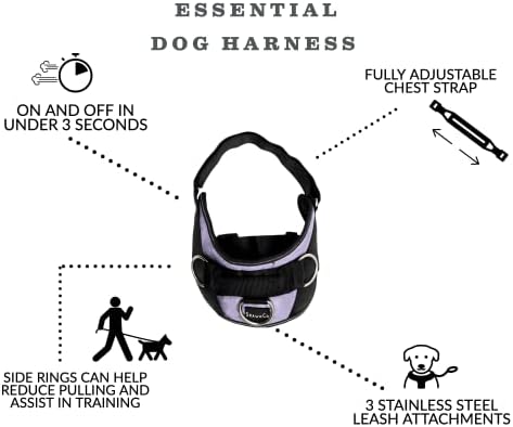 DURABLE AND COMFORTABLE DESIGN: The Essential harness is made of heavy duty and high quality materials, including 3 reinforced rings for leash attachment points, soft and breathable mesh underside for all day comfort and sturdy nylon handle and nylon straps for long term durability.