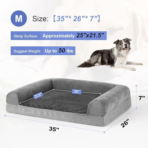 🐕 【SIZE】The orthopedic dog bed for Medium dogs M(35”x26”x7”) is perfect for medium dogs up to 50lbs, such as shepherds, Shiba Inus… If you need more space for your lovely furry friend, you can choose a size up, we offer 4 sizes from S to XL.
