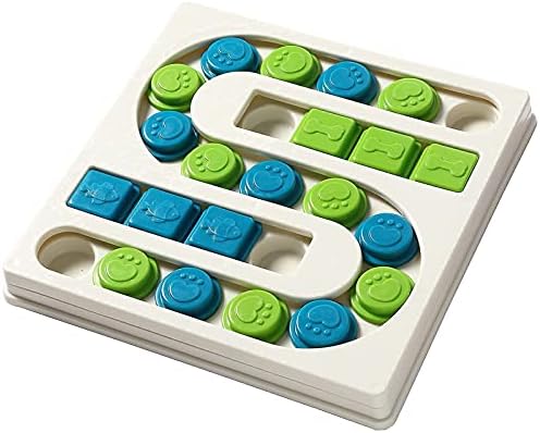 Item Size: 9.84 X 9.84 X 1.1″ -Size for puppies,medium size dogs and catsPut the pet’s treat or food on the holes.and hide it.Let our dogs and cats to find it by themselves,Dog move slider and rotate wheel with their paws and nose to reveal treats, It will be exercise the pets sense of smellCute design Made material of PPMake is as slow feeder dishes