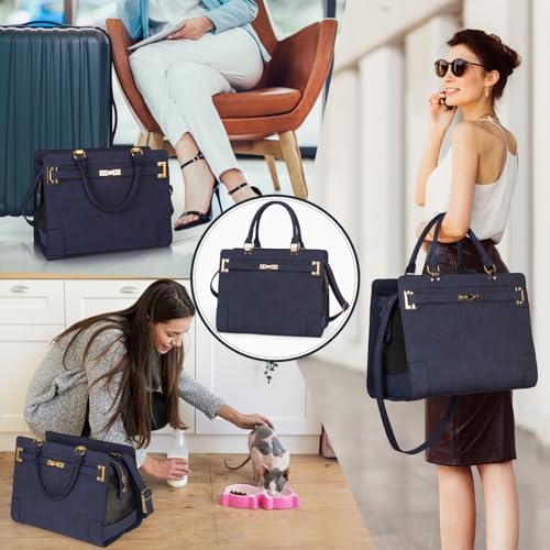 Stylish Pet Carrier Purse Leather Bag for Small Dogs Cats Puppy,Airline Approved Soft-Sided Carriers (Dark Blue)