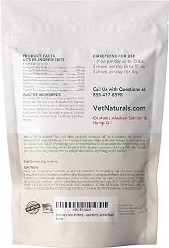 Veterinary Naturals Hemp Oil & Salmon Oil Chews for Dogs – Support HIPS & Joint – Best Source of Omega 3 – Fish Oil for Dog’s Shiny Coat & Itch Free Skin – 60 Soft Chew Dog Joint Supplements