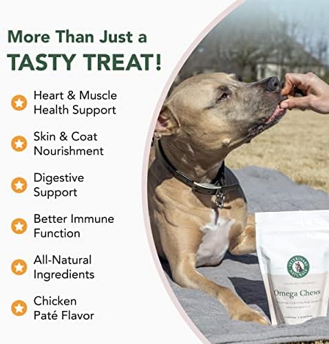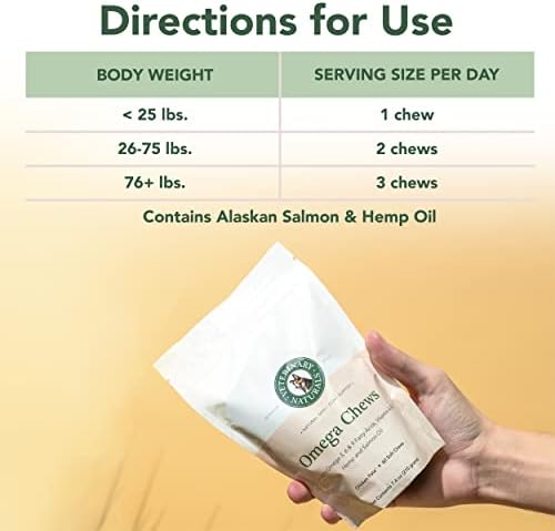 Proper nutrients for soft skin, a shiny coat, and more: Omega Chews have the perfect ratio of omega fatty acids from wild Alaskan salmon fish oil, as well as biotin, vitamins A and E, and hemp oil, to help maintain your dog’s skin, coat, muscle function, and heart health.
