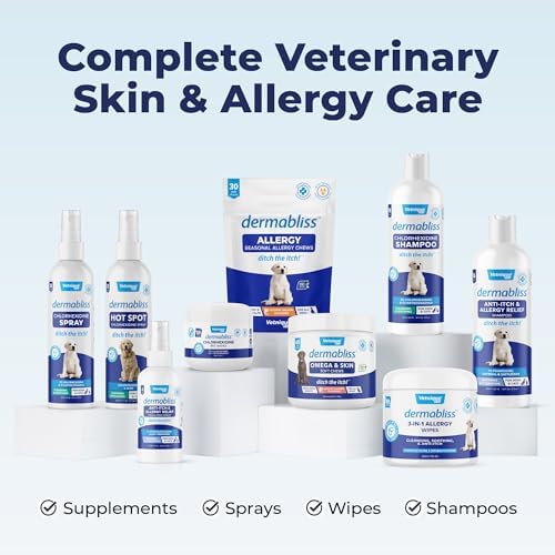 SAFE FOR DOGS & CATS – Dermabliss Chlorhexidine Spray is safe to use on dogs and cats of all ages. For complete support, use with Dermabliss Chlorhexidine Wipes and Shampoo, with daily Dermabliss seasonal allergy supplements.