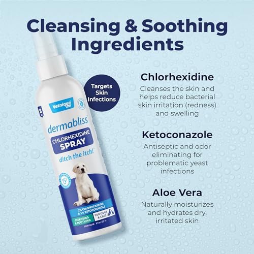 Vetnique Dermabliss Medicated Chlorhexidine Antiseptic Skin Spray for Dogs & Cats, Supports Skin Infections and Irritations 8oz