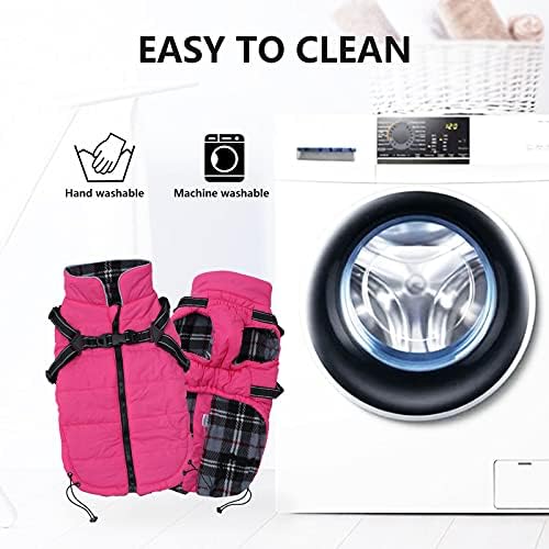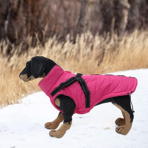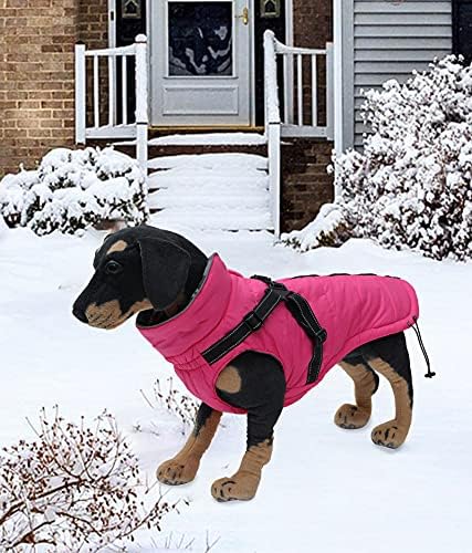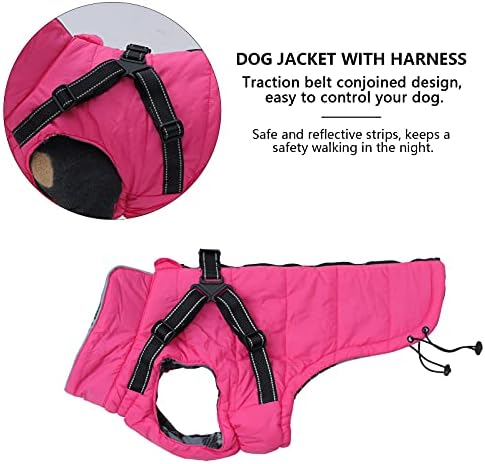 Winter Warm Coat Geyecete Waterproof Dog Winter Jacket with Harness Traction Belt,Pet Outdoor Jacket Dog Autumn and Winter Clothes for Medium, Small Dog-Pink-S