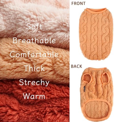 XPUDAC 3 Pack Dog Sweater, Dog Winter Coat with Rabbits Hearts Pattens Pullover Stretchy Fleece Dog Sweater for Small Medium Dogs Girl boy-XS(Red,Pink,Orange