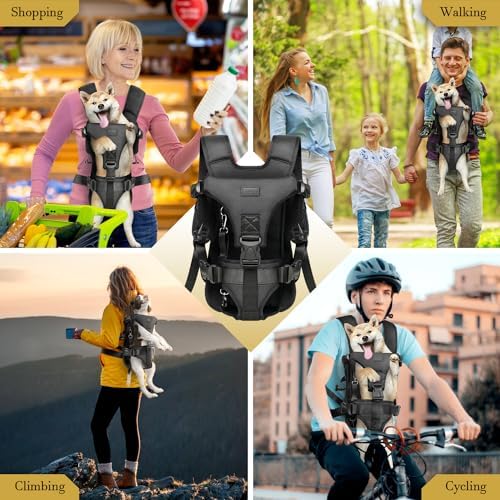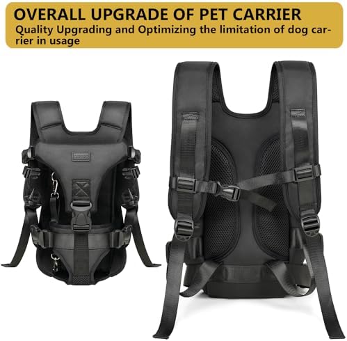 YUDODO Pet Dog Front Carrier Backpacks, Adjustable Dog Backpack Carrier for Small Medium Dogs, Legs Out Easy-fit Pet Dog Chest Carrier, Dog Hiking Carrier Chest&Belly Girth Adjustable (M Black)