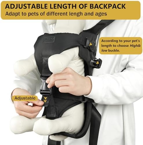 Adjustable Length of Backpack: This kind of innovative design that the length of carrier is adjustable adapt to pets of different lengh and ages. There are high& low 2 buckle to control the length of carrier, Please according to your pet’s length to adjust the buckle and belly belt.